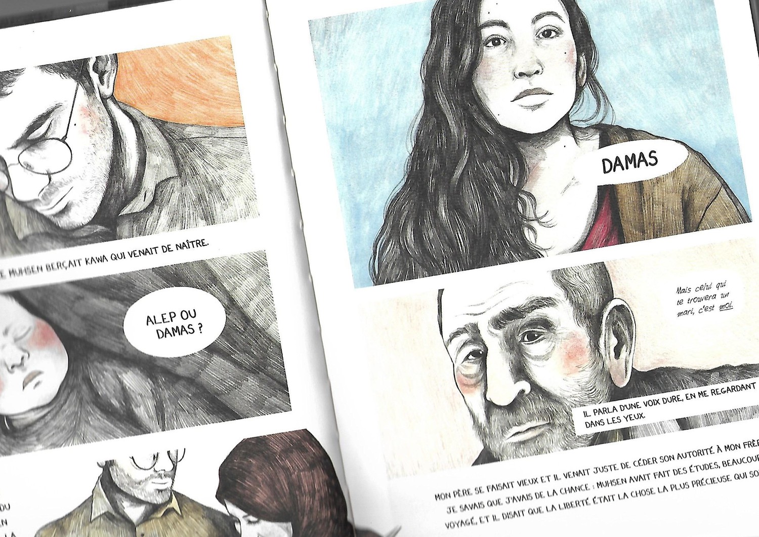 La violence et la guerre sont en toile de fond mais ce qui est montré ici à travers les dessins et le texte percutant, ce sont les ressentis de Khalat et de sa famille dans des évènements où plus rien n’est maitrisé, où la seule aide arrive d’opérations humanitaires ou d’initiatives individuelles, évitant que tout se dérobe d’un coup sous les pas.