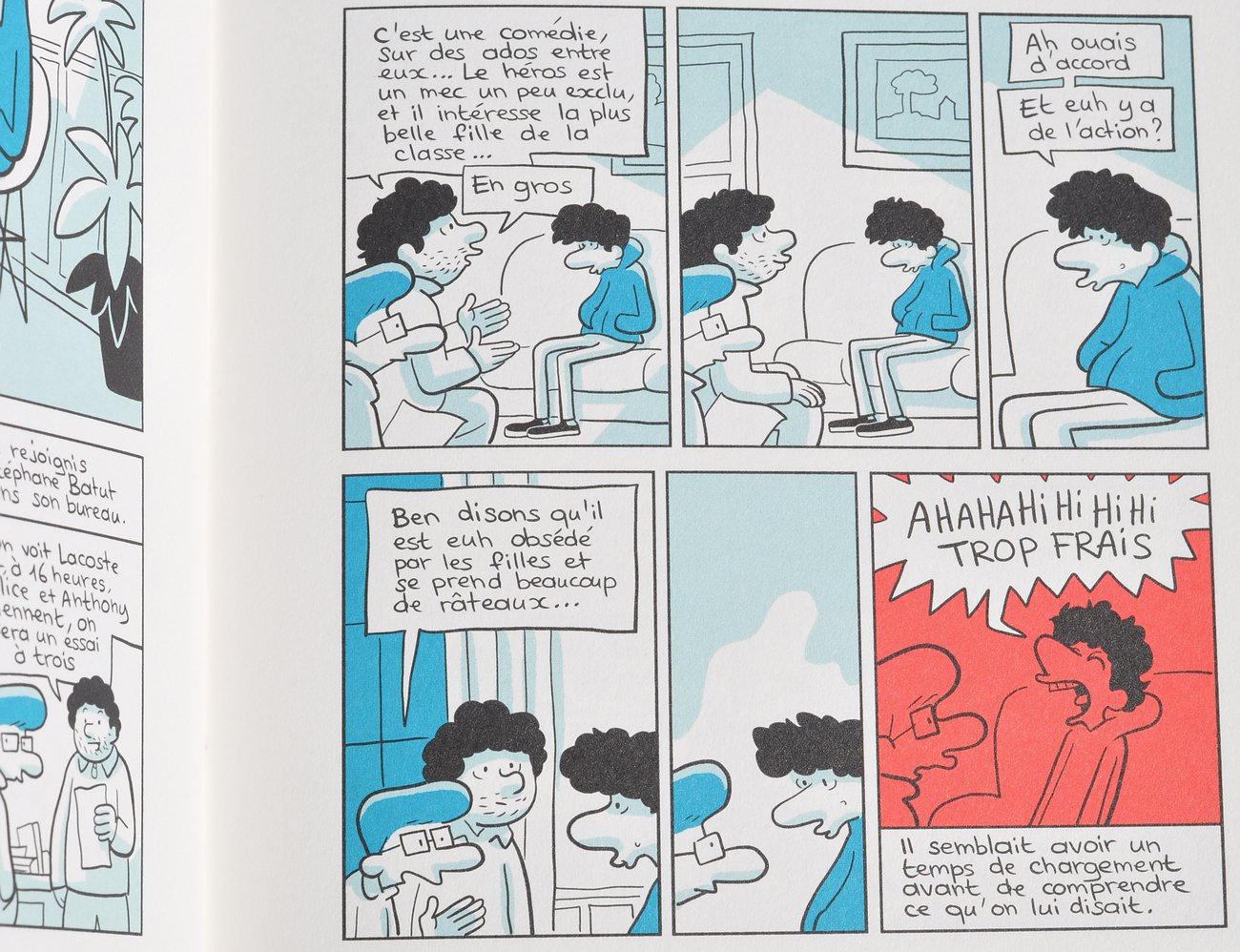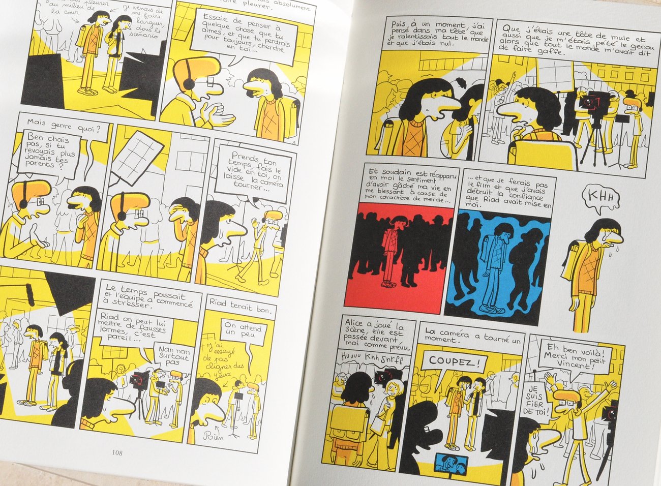 Au départ tout commence avec « Je m’appelle Riad Sattouf » qui se présente et raconte en une trentaine de pages le choix, difficile, de son acteur principal, puis vient le cœur du livre avec « Je m’appelle Vincent Lacoste », récit du jeune acteur par lui-même, et enfin une dernière partie avec les conséquences pour l’un et l’autre… Scénario maîtrisé de superbe manière par le maître !